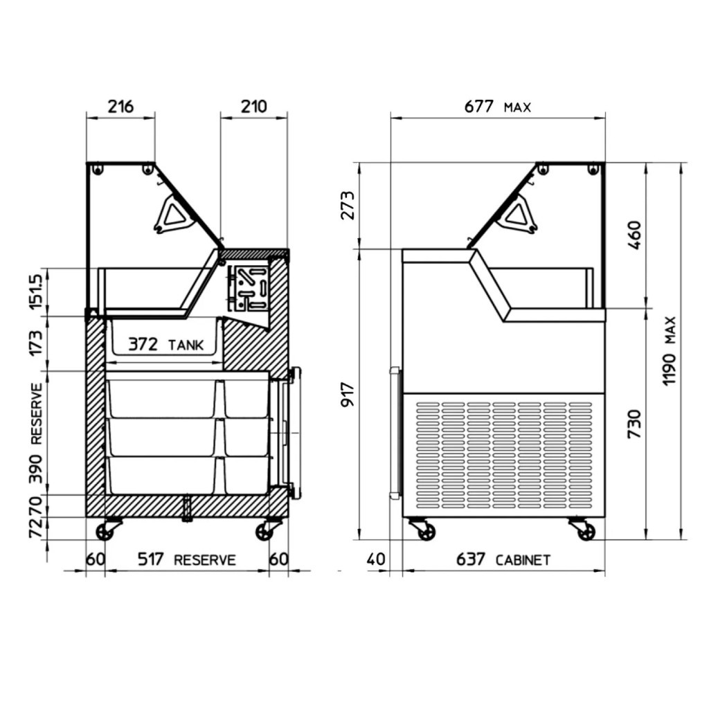 Professzionális, nagy kapacitású tégelyes fagylaltpult, amely modern megjelenésével és kiváló rálátást biztosító kialakításával növeli az impulzusvásárlást. A felnyitható hátsó fedél gyors és kényelmes kiszolgálást tesz lehetővé, így akár két munkatárs is egyszerre dolgozhat.